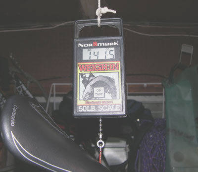he persuaded me to get one new from How does it ride? Fantastic! Much stiffer in the bottom bracket than the Fuji it is replacing. At the same time, the ride is very smooth; bumps are ironed out. Accelerates instantly. Handling is very stable. After burning out in the early '90s, it's got me excited about cycling again. This year (2004), turned in my fastest bike split at the Donner Lake Triathlon on this bike--the 6th time raced since 1990, and 6 years older. Specs: 2 lb 8 ounce frame with 73.5 degree seat angle (triathlon-biased), 73 degree head angle. Features Easton Scandium tubes, Easton SLX fork (300 gram), Time carbon seat stays with curved Scandium seat stays. Update 2/19/05: Just under 15lbs. Nothing too scary light except tires and lunar light tubes. Zero Gravity brakes feel very secure and seem to brake as well as previous Mavics. Update 3/13/05: lunar light tubes plus Vittoria ultra light tires = two flats in two rides. So I've replaced with heavier Continental tubes. Also put regular Dura Ace cables on. As a result, bike is now 15 lbs 3 oz, but pretty much no longer fragile but still damn light. Weight with Syntace triathlon bars is 16 lbs even. 12/29/07: Upgrade to 31.8: FSA SLK Compact road bars (225 gram), Ritchey WCS 4-axis stem (115 grams). Vs TTT Less Stem (130) and Easton EC90 Equipe (195). 10 gram more on scale. Teschner Website | Cycling News Reviews/Articles | Cycling News Photo |