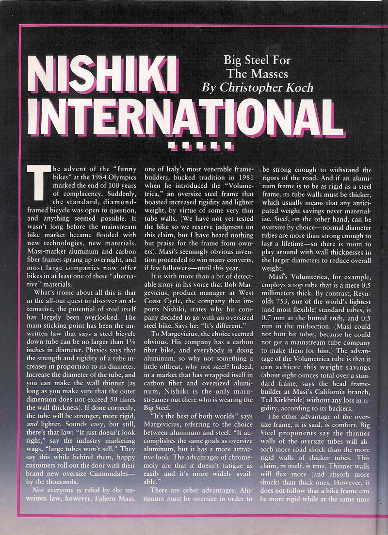 Here are copies of the original review from June 1986 Bicycle Guide Magazine:
